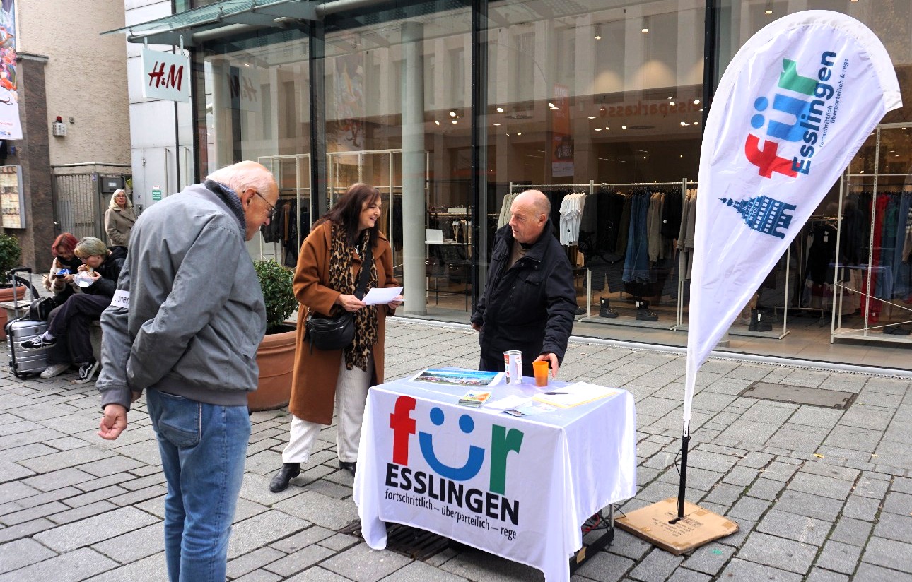 8.11. 12 Uhr Stuttgart: Gut 2000 Kolleginnen und Kollegen demonstrieren kämpferisch und quicklebendig gegen das systematische Ausbluten der Kommunen. Mitten drin in der von Verdi und dem Bündnis Kommunen am Limit veranstalteten Demo 6 Mitglieder von FÜR Esslingen. Auf dem Podium spricht auch eine Angehörige der Stadtverwaltung Esslingen gegen Personalabbau und Kürzungen in allen Bereichen. In dem Aufruf zur Demo heißt es: